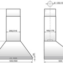 конструкция купольная • монтаж настенный • ширина 50 см • управление механическое/кнопочное • производительность мотора 430 м³/ч • цвет нержавеющая сталь