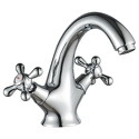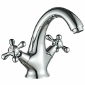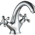 Назначение: для умывальника • Конструкция: двухрычажный • Монтаж: горизонтальный • Клапан: керамический • Материал: латунь, покрытие - хром • Подводка: гибкая • Монтажные отверстия: 1 отверстие • Форма излива: традиционная • Душевая лейка в комплекте: нет • Аэратор: есть • Донный клапан в комплекте: есть