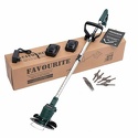 Комплектация- триммер - рукоятка - защитный кожух - нож 40Т - нож пластиковый - аккумуляторная батарея 2 шт- зарядное устройства - руководство по эксплуатации