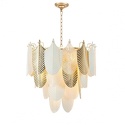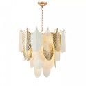 Подвесной светильник стиля модерн для гостиной, кабинета, прихожей или спальни имеет размеры 620x1970 мм. Арматура светильника окрашена в золотой цвет. Лампы в комплекте - отсутствуют. В светильнике применяются лампы накаливания или светодиодная LED-лампа. Цвет плафонов - белый, золото, неокрашенный, с глянцевой, матовой, прозрачной, рельефной поверхностью. Материал плафонов - металл, стекло, фарфор. Класс электробезопасности - I, степень пылевлагозащиты (IP) - 20. Максимальная мощность лампы (Вт) - 40.
