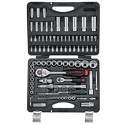 КомплектацияПривод 1/4":13 6-гр. коротких головок с УПК 4, 4.5, 5, 5.5, 6, 7, 8, 9, 10, 11, 12, 13, 14 мм.8 6-гр. длинных (длина 50 мм.) головок с УПК 6, 7, 8, 9, 10, 11, 12, 13 мм.18 головок-бит (длина 32 мм.):шестигранные (HEX): 3, 4, 5, 6 мм.с внешней звездой (TORX): T8, T10, T15, T20, T25, T30шлицевые (SLOTTED): 4, 5.5, 6, 5 мм.(PHILLIPS): PH1, PH2(POZI): PZ1, PZ2трещотка реверсивная2 удлинителя 50 мм., 100 мм.карданый шарнирворотокотверточная рукоятка3 шестигранника 1.5, 2, 2.5 мм.Привод 1/2":17 6-гр. коротких головок с УПК 10, 11, 12, 13, 14, 15, 16, 17, 18, 19, 20, 21, 22, 24, 27, 30, 32 мм.5 6-гр. длинных (длина 77 мм.) головок с УПК 14, 15, 17, 19, 22 мм.адаптер 3/8"(F)x1/2"(M)держатель бит 1/2"DRx5/16"16 5/16" бит (длина 30 мм.):шестигранные (HEX): 7, 8, 10, 12, 14 мм.с внешней звездой (TORX): T40, T45, T50, T55шлицевые (SLOTTED): 8, 10, 12 мм.(PHILLIPS): PH3, PH4(POZI): PZ3, PZ4трещотка реверсивная2 удлинителя 125 мм., 250 мм.2 головки свечные 16 мм., 20 мм.карданый шарнир