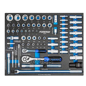 КомплектацияОснасткаголовки (56 шт.), удлинители (4 шт.), кардан (2 шт.), переходник (2 шт.), адаптер (1 шт.)Головкиторцевые шестигранные (24 шт.), глубокие торцевые (17 шт.), торцевые Е-тип (12 шт.), свечные (3 шт.)Торцевые шестигранные головки1/2″ (8, 10, 12, 13, 14, 15, 16, 17, 18, 19, 21, 22, 24, 27, 30, 32 мм), 1/4″ (6, 7, 8, 9, 10, 12, 13, 14 мм)Глубокие торцевые головки1/2″ (13, 14, 15, 17, 18, 19, 22, 24 мм), 1/4″ (6, 7, 8, 9, 10, 11, 12, 13, 14 мм)Торцевые головки E-тип1/2″ (Е10, Е11, Е12, Е14, Е16, Е18, Е20, Е24), 1/4″ (Е6, Е7, Е8), 3/4″ (Е24)Удлинители1/2″ (125, 250 мм), 1/4″ (50, 100 мм)Кардан1/2″, 1/4″Ключивороток (2 шт.)ВороткиT-образный (1 шт.), шарнирный (1 шт.)