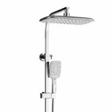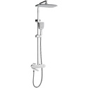 с тропическим душем, с ручным душем, с регулировкой по высоте, с шлангом для душа, с кронштейном, верхний душ, душевая стойка, смеситель, девиатор, излив для ванны Цвет белый/хром, хром, белый