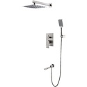 Комплектацияручной душ (душевая лейка), верхний душ (тропический), смеситель, излив, стойка/штанга, душевой шланг, крепление ручного душа, настенный кронштейн