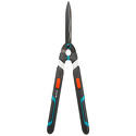 Для обрезки и придания формы кустарникам. Общая длина 700 мм - 900 мм, длина ножей 230 мм. Волнообразная заточка лезвий. Гелевые подушечки на рукоятке для амортизации удара. Интегрированный сучкорез для обрезки более толстых скучков и веток. Надежные, хорошо сбалансированные рукоятки для удобного хвата. Можно увеличить рукоятки (+20 см), создавая больший рычаг. Пластиковый чехол для защиты лезвия в упаковке можно использовать при хранении ножниц.