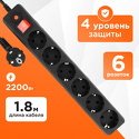 Розеток: евро 6 шт • Длина кабеля: 0.5 м • Мощность подключения: 2200 Вт, 10 А • Подключение: под ИБП • Защита: короткое