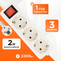 сетевой фильтр • 2 м • 3 розетки евро с заземлением / 2200 Вт