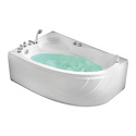 Материал: акрил • Расположение: отдельно стоящая, угловая конструкция • Форма: нестандартная • Количество мест: одноместная • Гидромассаж: есть, 5 форсунок • Подсветка: есть • Комфорт: подголовник • Смеситель в комплекте: есть • Размеры (ДxШxВ): 150x120x57 см