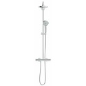 Устройство: душевая система • Смеситель: термостатический • Ручной душ (душевая лейка): размер 110 мм, настройки 3 шт • Верхний душ (тропический): размер 260 мм, настройки 3 шт • Комплектация: ручной душ, верхний душ, смеситель, стойка, шланг, крепление ручного душа