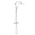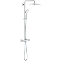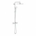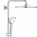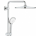 Устройство: душевая система • Смеситель: термостатический • Ручной душ (душевая лейка): размер 110 мм, настройки 3 шт • Верхний душ (тропический): размер 310 мм, настройки 1 шт • Комплектация: ручной душ, верхний душ, смеситель, стойка, шланг, крепление ручного душа