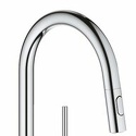 Долго и пристально выбирал смеситель на кухню между несколькими европейскими производителями. Остановились на этой модели, т. к., во-первых, у неё отличный и стильный внешний вид (коллекции других производителей мне не понравились внешне - либо были слишком вычурными, либо не подходили по стилю к нашей кухне), во-вторых, хотелось иметь выдвижную лейку (удобно ополаскивать раковину после мытья посуды: главное включить напор побольше и переключить на режим лейки). Ну и, разумеется, качество: Grohe - есть Grohe, к тому же кухонные смесители у них собираются в Португалии. Все детали очень аккуратно упакованы. Монтаж занял минут 15. Инструкция и ключ - в комплекте. Изначально были сомнения - не слишком ли уж толстый смеситель. Ответ - нет. То, что надо: бросается в глаза, но при этом выглядит стильно, а не вычурно. Заказывали через интернет-магазин (но предварительно "щупали" в обычном магазине). Недостатков для себя на находим (используем полгода), но есть особенность. Если открыт совсем (!) слабый напор воды, то на душ переключиться не удастся. Но при слабом напоре душ и не нужен: чтобы ополоснуть раковину, я включаю напор на полную мощность, а чтобы помыть посуду достаточно среднего напора. И всё работает отлично. И ещё момент - при опять-таки слабом напоре (когда чуть-чуть приоткрыли рычаг), то смеситель издают жужжащий звук. Но то же самое происходит и с любым другим смесителем. Специально прислушивался. И, конечно, любой хромированный смеситель любой фирмы надо протирать - чтобы он блестел. У этой модели от воды пачкается только основание с рычагом и реже - носик. На на сам длинный излив вода не попадает. Опять-таки - удобно.