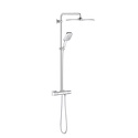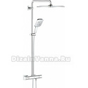 Устройство: душевая система • Смеситель: термостатический • Ручной душ (душевая лейка): размер 130 мм, настройки 3 шт • Верхний душ (тропический): размер 310 мм, настройки 1 шт • Комплектация: ручной душ, верхний душ, смеситель, стойка, шланг, крепление ручного душа