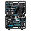 Набор: 75 шт • Ключи: комбинированные, шестигранные • Головки: 6-ти гранные головки, свечные • Ключей-трещоток: 2 шт • Хранение: пластиковый кейс