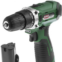 Тип: дрель-шуруповерт, пистолетная • Обороты: 1400 об/мин, скоростей 2 • Патрон: быстрозажимной, Ø 10 мм • Функции: реверс, подсветка, тормоз двигателя • Питание: аккумулятор, 12 В, Li-Ion