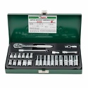 Набор: торцевых головок 21 шт • Торцевые головки: 6-гранные • Посадочный квадрат: 1/4" • Дополнительно: переходник, удлинитель, карданный шарнир