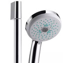 Устройство: душевой набор • Ручная лейка: размер 100 мм, настройки 2 шт • Комплектация: ручной душ, стойка, шланг, крепление ручного душа, мыльница