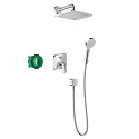 Комплектацияручной душ (душевая лейка), верхний душ (тропический), смеситель, душевой шланг, крепление ручного душа, настенный кронштейн