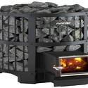 Пристенная банная печь, отапливаемый объем 24 куб.м, мощность 21 кВт, закрытого типа, древесное топливо