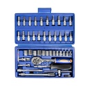 Набор: 46 шт • Ключи: шестигранные • Головки: 6-ти гранные головки • Ключей-трещоток: 1 шт • Хранение: пластиковый кейс