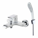 Комплектация - Держатель душевой лейки, душевой шланг, ручной душ, Покрытие - Хром, Тип подводки - Жесткая, Тип - Однозахватный, Назначение - Для ванны и душа, Встраиваемый - Нет, Присоединительный размер - 1\2", Термостат - Нет, Количество монтажных отверстий - 2, Материал корпуса - Латунь, Цвет - Белый, Донный клапан - Нет, Аэратор - Есть, Поворотный излив - Нет, S-образные эксцентрики - Есть, Форма излива - Традиционная, Ширина - 21.2, Длина излива - 179, Глубина - 20.4