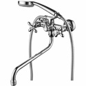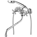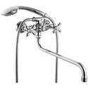 Покрытие - Хром, Материал корпуса - Латунь, Назначение - Для ванны и душа, Тип - Двухзахватный, Встраиваемый - Нет, Аэратор - Есть, Присоединительный размер - 1\2", Термостат - Нет, Количество монтажных отверстий - 2, Поворотный излив - Да, Форма излива - Традиционная, Цвет - Серебристый, Донный клапан - Нет
