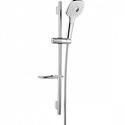 Устройство: душевой набор • Ручная лейка: размер 112 мм, настройки 3 шт • Комплектация: ручной душ, стойка, шланг, крепление ручного душа, полка