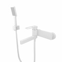 Смеситель для ванны Slide в трендовом матовом белом цвете со складным изливом — стильное функциональное решение без лишних деталей, подойдет и для ванны, и для душевой кабины. Отверстие-петля на ручке выполняет декоративную и при этом практичную роль — ее легко захватить даже намыленной рукой и отрегулировать напор или температуру. В комплекте душевые аксессуары в тон смесителю — прямоугольная лейка, гладкий шланг из ПВХ с защитой от перекручивания и держатель для лейки.