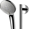 Устройство: душевой набор • Ручная лейка: размер 100 мм, настройки 3 шт • Комплектация: лейка, стойка, шланг, крепление лейки, мыльница