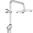 Устройство: душевая система • Смеситель: джойстик • Ручной душ (душевая лейка): размер 110 мм, настройки 3 шт • Верхний душ (тропический): размер 252 мм, настройки 1 шт • Комплектация: ручной душ, верхний душ, смеситель, стойка, шланг, крепление ручного душа