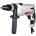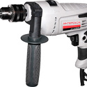 Одна из самых легких (всего 1,7кг!) и бесспорно дешевых (мне досталась за каких-то жалких две тыщи с копейками) ударных дрелей в своем классе — вот сведения, которыми я обладал в момент покупки. Спустя 9 месяцев систематической эксплуатации могу добавить: к тому же, весьма живучая и надежная дрель. Что умеет: без проблем справляется с деревом, металлом (до 13мм), керамикой и прочими аналогичными материалами. При желании можно сверлить и бетонные перекрытия, но здесь главное не переусердствовать — все-таки, не перфоратор, ресурс мощности и сам принцип действия механизма долбления на такое не очень рассчитан. Впрочем, это согласно инструкции — сам я просверлил немало бетонных дыр (до 8мм) и каких-либо отклонений в состоянии здоровья инструмента не отметил. Набор опций стандартно-исчерпывающий: регулятор скорости оборотов, реверс.