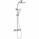 Устройство: душевая система • Смеситель: термостатический • Ручной душ (душевая лейка): настройки 3 шт • Верхний душ (тропический): размер 250 мм, настройки 1 шт • Комплектация: ручной душ, верхний душ, смеситель, стойка, шланг, крепление ручного душа