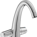 Назначение: для умывальника • Конструкция: с раздельными клапанами • Монтаж: горизонтальный • Материал: латунь, покрытие - хром • Монтажные отверстия: 1 отверстие • Форма излива: традиционная • Душевая лейка в комплекте: нет • Аэратор: есть • Донный клапан в комплекте: есть