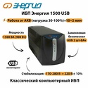 Производитель: Энергия Модель: ИБП 1500 - Тип интерактивный - Выходная мощность 1500 ВА / 900 Вт - Время работы при полной нагрузке 3 мин Описание