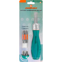 Комплектация- Отверточная рукоятка с храповым механизмом и реверсом;- Вставки-биты 25 мм.:- PZ: #1, #2;- PH: #1, #2;- SL: 4.5, 7 мм.;- TORX: T10,T15,T20,T25,T30,T40;- HEX: 2, 2.5, 3, 4, 5, 6 мм.