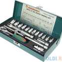 Головки торцевые подробно1/4": 4, 4.5, 5, 5.5, 6, 7, 8, 9, 10, 11, 12, 13 мм; трещетка 1/4": 36 зубов; удлинитель 1/4": 50, 100 мм; вороток с шарниром 1/4"