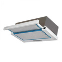 конструкция телескопическая • монтаж для встраивания • ширина 59.3 см • управление механическое/кнопочное • производительность мотора 550 м³/ч • цвет белый