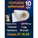 | 119021, Россия, г. Москва, ул. Тимура Фрунзе, д. 11, строение 44, этаж 5 Поролон листовой Поролон мебельный 10 мм, ST 18-25, размер 200*50*1 см Доставка — от 49 руб. Из Москвы. | 485 руб. 771 руб. -37% | В магазин | |