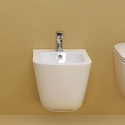 Тип: унитаз, подвесной • Чаша: воронкообразная, прямоугольная (скошенные углы) • Слив: горизонтальный • Материал: санфарфор