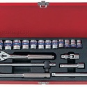 Комплектация- Трещотка 3/8", 200 мм, 32 зубца, флажковая - арт. 3769-08F;- Вороток 3/8", 215 мм, с шарниром - арт. 3452-08F;- Вороток 3/8", 200 мм, скользящий - арт. 3571-08;- Кардан 3/8" - арт. 3792;- Удлинитель 3/8", 75 мм - арт. 3221-03;- Удлинитель 3/8", 150 мм - арт. 3221-06;- Головки торцевые стандартные двенадцатигранные 3/8", KING TONY серии 3330M: 6, 7, 8, 9, 10, 11, 12, 13, 14, 15, 16, 17, 19, 20, 21, 22;