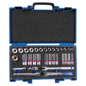 Комплектация- Стандартные 12-гранные головки 3330S 1/4, 5/16, 11/32, 3/8, 7/16, 15/32, 1/2, 9/16, 19/32, 5/8, 11/16, 3/4, 13/16, 7/8, 15/16- Глубокие 12-гранные 3230S 5/16, 3/8, 7/16, 15/32, 1/2, 9/16, 19/32, 5/8, 11/16, 3/4, 13/16, 7/8- Трещотка флажковая 3771-08G 32 зубца, 200 мм- Вороток с шарниром 3453-08F 200 мм- Удлинители с шаровым окончанием 15° двухпозиционные 3293 75, 150 мм- Кардан 3792 56,5 мм- Кейс