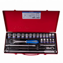 Комплектация- Головки короткие 12-гранные 4330M 10, 11, 12, 13, 14, 15, 16, 17, 18, 19, 20, 21, 22, 23, 24, 27, 30, 32 мм- Трещотка флажковая 4768-10F 32 зубца, 250 мм- Вороток с шарниром 4452-18FR 450 мм- Вороток скользящий T-типа 4572-12 300 мм- Кардан 4791R 77,5 мм- Удлинители 4251R 75, 125, 250 мм- Металлический кейс - 445 x 187 x 50 мм- Ложемент PVC - 440 х 180 мм