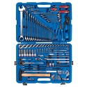 Комплектация- Головки и принадлежности 1/2"Головка торцевая стандартная 6-гранная 4335M 8, 9, 10, 11, 12, 13, 14, 15, 16, 17, 18, 19, 21, 22, 24, 27, 30, 32 ммГоловка торцевая глубокая 6-гранная 4235M 10, 12, 13, 14, 15, 17, 19 ммГоловка свечная 6-гранная, резиновый фиксатор 463516R 16 ммГоловка свечная 6-гранная, резиновый фиксатор 463521R 21 ммНасадка (бита) торцевая, HEX, L = 60 мм 4025 H12, H14, H17Трещотка флажковая с кнопкой 4771-10GR 32 зубца, 250 ммВороток с шарниром 4452-15FR 380 ммВороток скользящий 4572-12 300 ммУдлинитель 4251-05R 125 ммУдлинитель 4251-10R 250 ммУдлинитель 15 градусов, с шаровым окончанием 4223-02R 50 ммКардан 4791R 1 шт.- Головки и принадлежности 1/4"Головка торцевая стандартная 6-гранная 2335M 4, 4.5, 5, 5.5, 6, 7, 8, 9, 10, 11, 12, 13 ммГоловка торцевая глубокая 6-гранная 2235M 7, 8, 10, 12, 13 ммНасадка (бита) торцевая, TORX, L = 37 мм 2033 T10, T15, T20, T25, T27Насадка (бита) торцевая, HEX, L = 37 мм 2035 H4, H5, H6, H7, H8, H10Трещотка флажковая с кнопкой 2771-55G 24 зубца, 140 ммВороток скользящий 2571-45 115 ммУдлинитель 2221-03 75 ммУдлинитель 15 градусов, с шаровым окончанием 2293-02 50 ммУдлинитель 15 градусов, с шаровым окончанием 2293-06 150 ммУдлинитель гибкий 2311-06 150 ммКардан 2792 1 шт.- КлючиКлючи комбинированные 1060 6, 7, 8, 9, 10, 11, 12, 13, 14, 15, 16, 17, 19, 21, 22, 24, 27, 30, 32 ммКлючи разрезные 1930 8x10, 9x11, 12x13, 14x17, 17x19 мм- Отвёртки, шестигранники, TORX Крестовые Phillips 1421 PH1 х 80 мм, PH2 х 38 мм, PH2 х 100 мм Шлицевые Slotted 1422 5 х 75 мм, 6.5 х 38 мм, 6.5 х 100 мм Набор Г-образных шестигранников 20219MR 1.5, 2, 2.5, 3, 4, 5, 6, 8, 10 мм Набор Г-образных TORX 20307PR T10, T15, T20, T25, T27, T30, T40- Шарнирно-губцевый инструментПлоскогубцы комбинированные 6111-07 180 ммБокорезы 6211-06 160 ммЗахват переставной 6511-10 250 мм- Ударный и режущий инструментКернер 76104-05 4x120 ммЗубило 76215-05 15x125 ммБородок 76303-05 3x120 ммВыколотка 76404-06 4х150 ммКрейцмейсель 76505-05 2,6х132 ммМолоток 300 гр., немецкий тип 7821-30 1 шт.- Вспомогательный инструментМагнит телескопический 2128-26 2,2 кг / 130 – 640 ммРазмеры кейса: 560 x 400 x 110 ммМатериал кейса: пластик марки ABSЗамки: металлические, тип фиксатора CLIP-LOCK