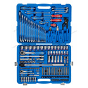 КомплектацияГоловки и принадлежности 1/2"Головка торцевая стандартная шестигранная: 10, 11, 12, 13, 14, 15, 16, 17, 18, 19, 20, 21, 22, 23, 24, 25, 26, 27, 28, 29, 30, 32 ммГоловка торцевая глубокая шестигранная: 13, 14, 17, 19, 22 ммГоловка торцевая TORX Е-стандарт: E10, E12, E14, E16, E18, E20Головка свечная шестигранная, резиновый фиксатор: 14 ммГоловка свечная шестигранная, резиновый фиксатор: 16 ммТрещотка флажковая с кнопкой: 32 зубца, 250 ммВороток с шарниром: 450 ммУдлинитель: 125 мм, 250 ммУдлинитель 15 градусов, с шаровым окончанием: 50 ммКардан: 1 шт.Держатель вставок (бит) 10 мм 414810M 1 шт.Головки и принадлежности 1/4"Головка торцевая стандартная шестигранная: 4, 4.5, 5, 5.5, 6, 7, 8, 9, 10, 11, 12, 13 ммГоловка торцевая глубокая шестигранная: 6, 7, 8, 9, 10, 11, 12, 13 ммГоловка торцевая TORX Е-стандарт: E4, E5, E6, E7, E8Трещотка флажковая с кнопкой, фиксатор: 24 зубца, 140 ммВороток с шарниром: 125 ммОтвертка вороток, двухкомпонентная ручка: 150 ммУдлинитель: 50 ммУдлинитель: 150 ммКардан: 1 шт.Держатель вставок (бит): 1 шт.КлючиКлюч комбинированный: 8, 10, 11, 12, 13, 14, 15, 16, 17, 18, 19, 21, 22, 24, 27 ммКлюч разрезной: 8x10, 11x13, 12x14 ммОтверткиОтвертка крестовая Phillips: PH2 х 38 ммОтвертка шлицевая Slotted: 6,5 х 38 ммОтвертка крестовая Phillips: PH1 х 75 мм, PH2 х 100 ммОтвертка шлицевая Slotted: 5,5 х 100 мм, 6,5 х 150 ммВставки (биты) 10 ммДлина 80 мм HEX, шестигранники: H5, H6, H7, H8, H10, H12SPLINE, 12-лучевая звезда: M6, M8, M10, M12TORX, 6-лучевая звезда: T25, T30, T40, T45, T50, T55, T60Длина 36 мм HEX, шестигранники: H5, H6, H7, H8, H10, H12SPLINE, 12-лучевая звезда: M6, M8, M10, M12TORX, 6-лучевая звезда: T30, T40, T45, T50, T55, T60Вставки (биты) 1/4" (6,35 мм)Phillips: PH0, PH1, PH2Pozidriv: PZ0, PZ1, PZ2Slotted, шлицевые: 4, 5, 6.5 ммHEX, шестигранники: H3, H4, H5, H6TORX, 6-лучевая звезда: T10, T15, T20, T25, T27, T30, T40Шарнирно-губцевый инструментПлоскогубцы комбинированные: 160 ммЗахват переставной: 250 ммБокорезы: 125 мм