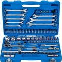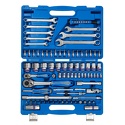 Набор: 83 шт • Ключи: комбинированные • Головки: 6-ти гранные головки, свечные • Ключей-трещоток: 2 шт • Хранение: пластиковый кейс