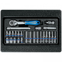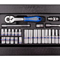 Набор: торцевых головок 21 шт • Торцевые головки: 6-гранные • Посадочный квадрат: 1/4" • Дополнительно: переходник, удлинитель, карданный шарнир