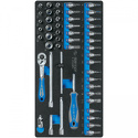 Комплектация- Ложемент.- Головки и принадлежности 1/4":* Головка торцевая стандартная шестигранная серии 2335M 4, 4.5, 5, 5.5, 6, 7, 8, 9, 10, 11, 12, 13, 14 мм.* Головка торцевая TORX Е-стандарт серии 2375M E4, E5, E6, E7, E8.* Отвертка вороток, двухкомпонентная ручка серии 2178DF 150 мм.* Вороток скользящий серии 2571-45 115 мм Удлинитель серии 2221 50 мм.* Удлинитель, 15 градусов, с шаровым окончанием, серии 2293 100 мм, 150 мм.* Кардан серии 2792 1 шт.* Трещотка флажковая с кнопкой серии 2771-55G 24 зубца, 140 мм.- Головки с запрессованными вставками 1/4", длина 37 мм:* Крестовые Philips, серии 2031 PH1, PH2, PH3, PH4.* Шлицевые Slotted, серии 2032 4, 5.5, 6.5, 8, 10 мм.* Торкс TORX, серии 2033 T8, T9, T10, T15, T20, T25, T27, T30, T40.* Шестигранники HEX, 5 мм, серии 2035 H3, H4, H5, H6, H7, H8, H10.- Упаковка.
