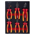 Комплектация– Бокорезы диэлектрические, 167 мм (6216-06A)– Пассатижи тонконосые диэлектрические, 210 мм (6318-08A)– Стриппер диэлектрический, 160 мм (6716-06A)– Пассатижи комбинированные диэлектрические, 185 мм (6116-07A)– Пассатижи тонконосые, загнутые, диэлектрические 200 мм (6336-08A)– Кабелерез диэлектрический, 214 мм (6146-08A)