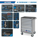 КомплектацияМодуль 1Набор торцевых головок 1/4"&3/8"&1/2" с принадлежностями, 103 предмета 9-9503MRV01Модуль 2Набор торцевых головок 3/4" с принадлежностями, 14 предметов 9-6314MRVМодуль 3Набор насадок HEX, TORX и SPLINE, 17 предметов 9-4147PRVНабор вставок (бит) 10 мм, TORX, SPLINE, HEX, 44 предмета 9-1044CQVНабор торцевых насадок, бит и ударная отвертка, 43 предмета 9-4143FRVНабор трещоточных комбинированных ключей, 12 предметов 9-10112MRVМодуль 4Набор комбинированных ключей, 20 предметов 9-1220MRVНабор отверток силовых, 8 предметов 9-30208MRVМодуль 5Набор съемников стопорных колец, 6 предметов 9-42116GPVНабор пассатижей и бокорезов, 4 предмета 9-40104GPVНабор пассатижи, переставные клещи и зажим, 3 предмета 9-40113GPVМодуль 6Заклепочник с набором заклепок, 121 предмет 9-21-20-07MRVНабор зубил, выколоток, кернеров с молотком, 8 предметов 9-90118PRVНабор ударных глубоких торцевых головок 3/4", 14 предметов 9-6414MPVМодуль 7Набор ударных головок 1", головок TORX Е-стандарт, молоток, съемник,тестер, 30 предметов 9-99430MFVТележка инструментальная7 выдвижных полок, цвет синий Количество предметов: 327Количество ложементов: 15Размеры тележки в сборе: 460 х680 х 955 ммУпаковка: картонВес: 112,15 кг