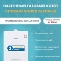 Производитель: Kiturami Модель: World Alpha 30 - Источник энергии: газ - Мощность: 34.9 кВт, площадь 279 м² - Тип котла: настенный, двухконтурный Описание