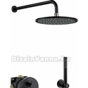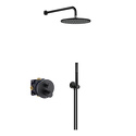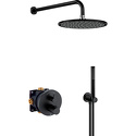 Устройство: душевая система • Смеситель: термостатический • Ручной душ (душевая лейка): настройки 1 шт • Верхний душ (тропический): размер 300 мм, настройки 1 шт • Комплектация: ручной душ, верхний душ, смеситель, шланг, крепление ручного душа